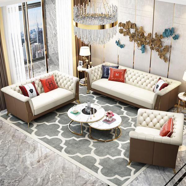 Multi colored Hotel Bedroom Furniture Leather Sofa Set with Metal Frame Images |